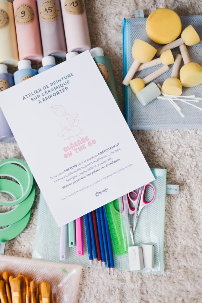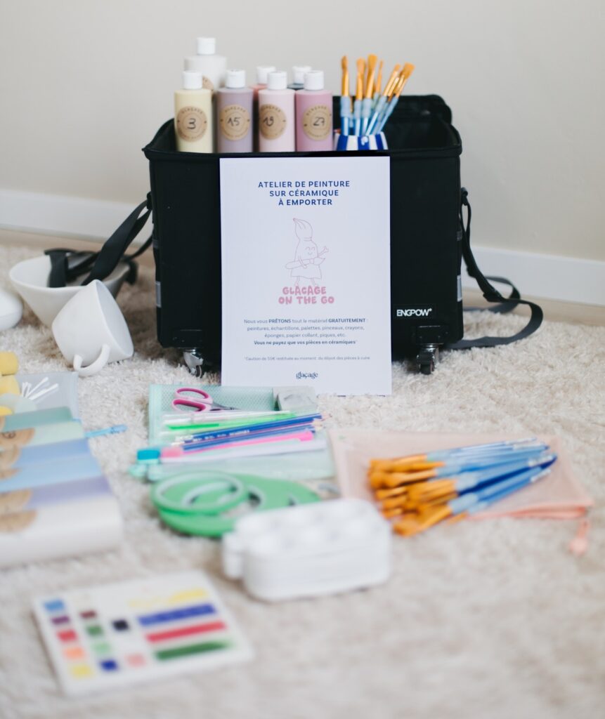 Avec notre kit GLAÇAGE ON THE GO, créez votre atelier peinture sur céramique dans le lieu de votre choix ! Nous prêtons gratuitement tout le matériel nécessaire et vous fournissons un guide simple pour chaque étape !