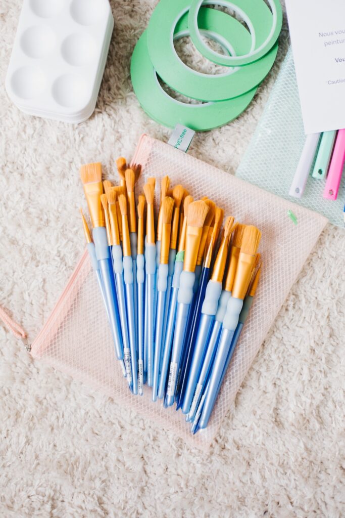 Récupérez-le à nos studios pendant les heures d’ouverture. Il contient 13 couleurs (qui pourront ensuite être mélangées pour en créer des nouvelles), des pinceaux, ruban adhésif, éponges, etc. Choisissez et payez vos pièces sur place. Laissez-vous tenter par des boissons et encas pour accompagner votre moment créatif (optionnel).